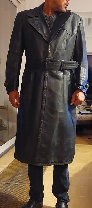 Vintage Ledermantel STRIWA „Original Fabrikat“ - Motorrad- oder Offiziersmantel („Greatcoat“-Stil)