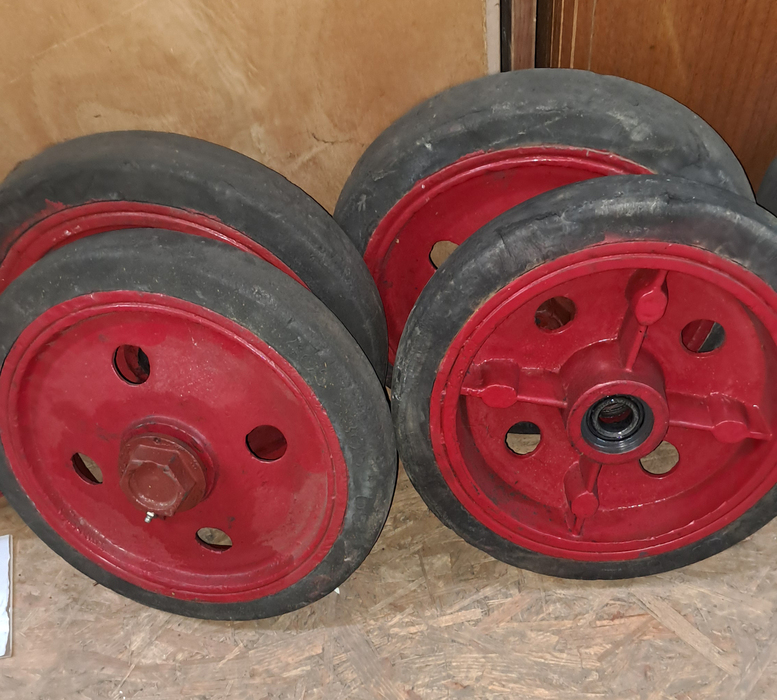 4 Vollgummiräder, 400mm Durchm. 80mm breit, schwere Ausführung, Nabe Guss, mit neuem Kugellager, Stück € 30,-, Tel. 0172/6494426