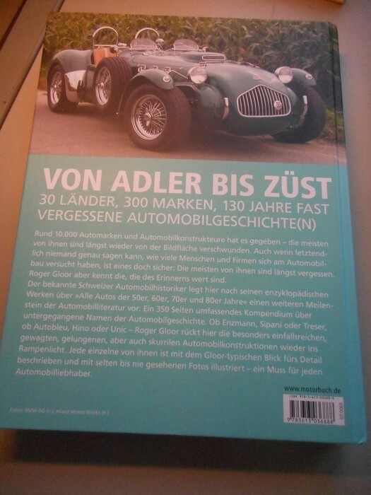 Verkaufe hier ein großes Autobuch über 300 untergegangene Marken , von Roger Gloor aus dem Motorbuch-Verlag,