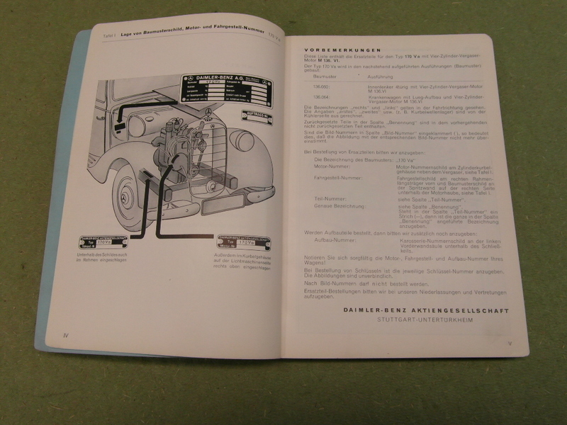 Die Liste gilt für den 170 Va mit M136 Benzinmotor. Es ist die Ausgabe A vom Oktober 1950.