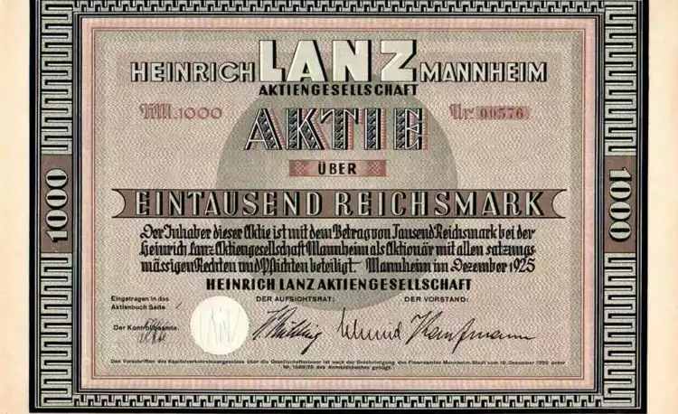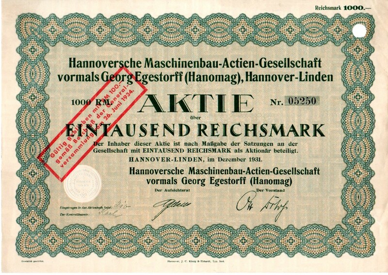 Verkaufe alte Orginal-Aktien von Lanz, Hanomag, MAN, Deutz und Massey-Ferguson, DIN A4 Format, zum Teil sehr dekorativ