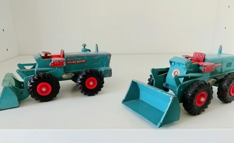 Aveling Barford Tractor Shovel, 1963-66, GB, Druckguss, ca. 1:50 ,1.und 2.Version bespielt ,aber noch gut, komplett und  absolut original!, Tel. 0174/3540118, AB