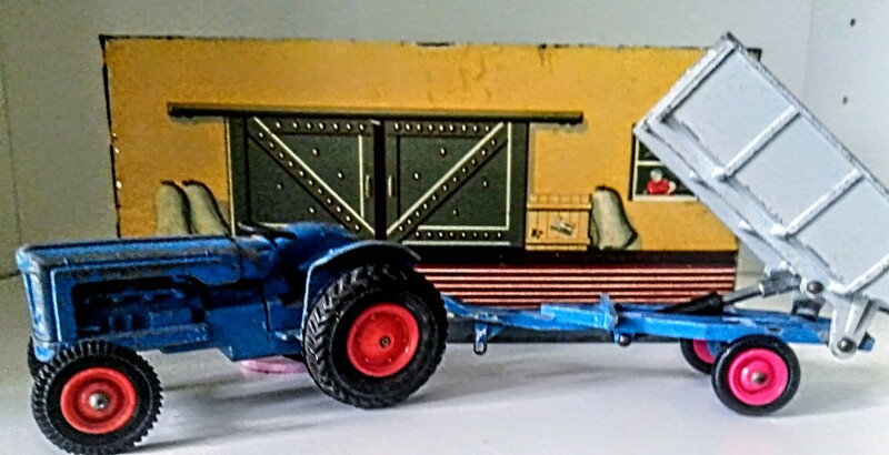 Fordson Traktor mit Hänger,  GB, 60erJ., ca: 1:43, mit Spiel- u. Alterspuren, jedoch noch orig. & gut!, Tel. 0174/3540118 AB