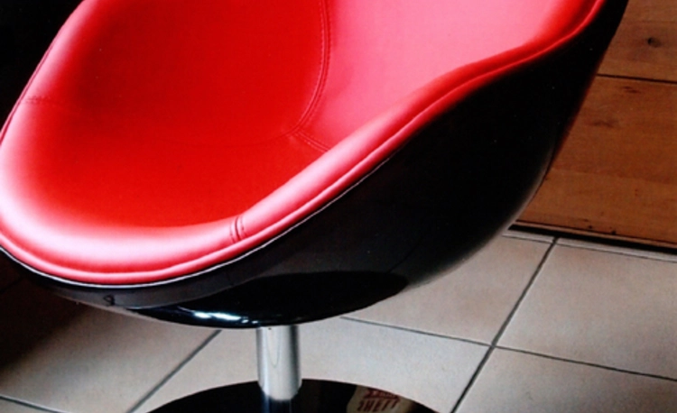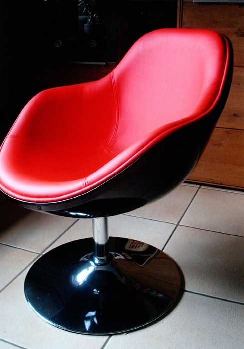 Designer-Sessel, Leder rot, Kunststoffschale schwarz, Metallfuß, NP € 499,-, Preis VB € 270,-, kein Versand, gern SMS 0177/4156831