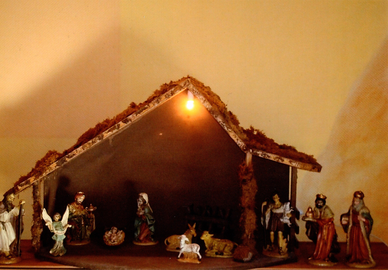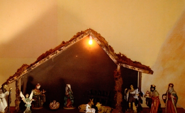 Schöne Weihnachtskrippe, B 1.30m, T 0.60m, H 0.75m, 11 Keramikfiguren, beleuchtet, stammt aus dem Schwarzwald, Preis VB € 640,-, kein Versand, gern SMS 0177/4156831