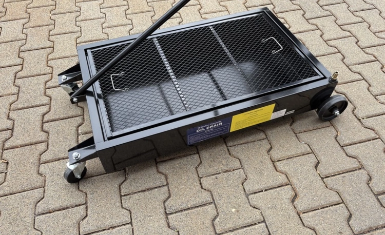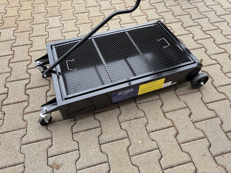 Ölauffangbehälter  für 60 Liter mit Kunststoffrädern und Ölablasshahn als auch eine Absaugmöglichkeit.